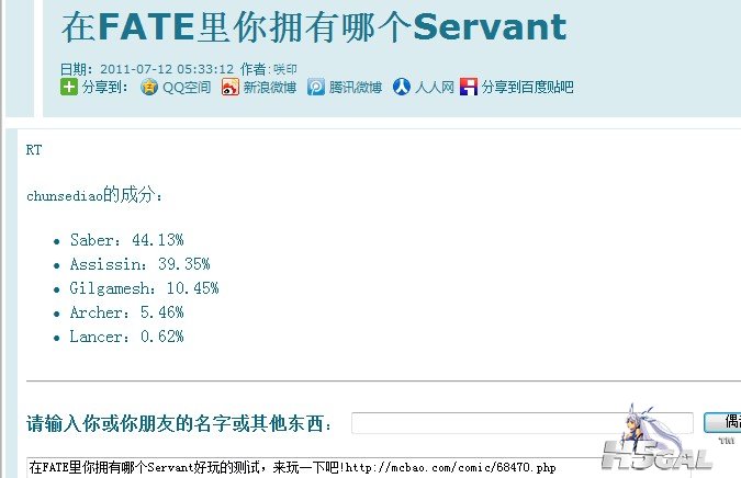 [其它] 【测试】在FATE里你拥有哪个Servant |