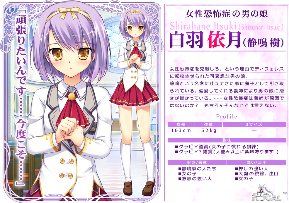 作为代代服侍名门的静鸣家的养子,树因女性恐惧症而遭到失败,为了克服这一病症