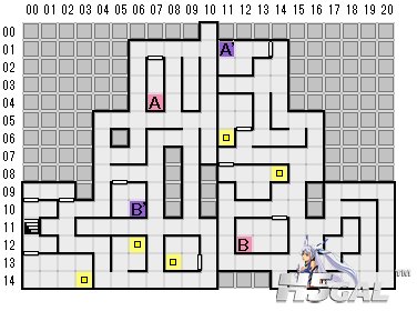 B(03,21)触发事件 然后去A(06,22)解救失足少女>_<再回到B(21,03)就触发BOSS战了(BOSS的攻击附带麻痹效果 在麻痹效果下什么也不能做 无法回避的话还是蛮辛苦 唯是练到Lv9才来打的) 胜利模式 败北模式融合状态各有4种CG 打败BOSS后拿到“秘银合金钥匙” 推荐练到Lv11再去B(10,17)开门 从楼梯到3层